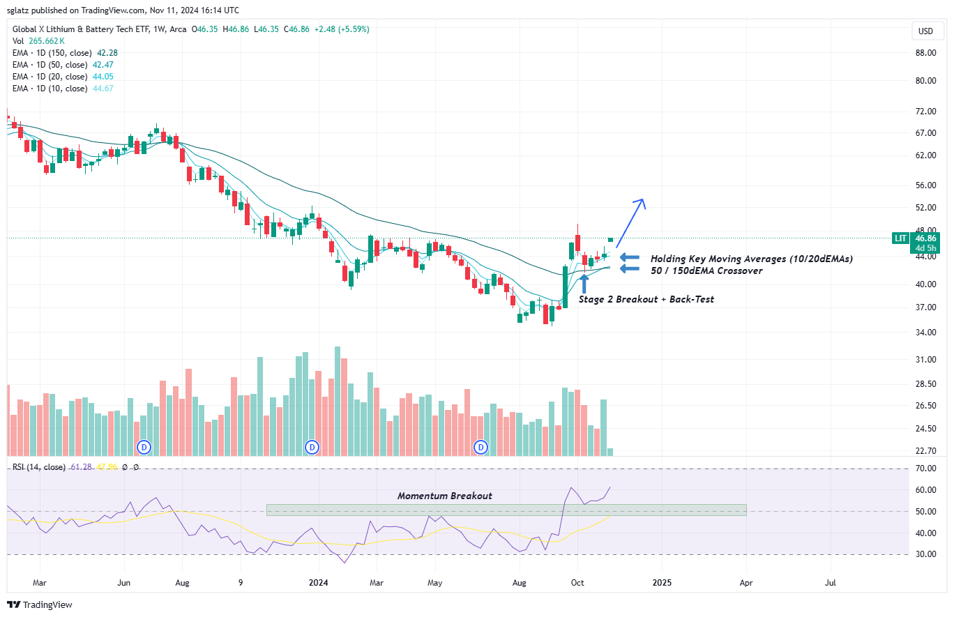We’ve been tracking the performance of the Lithium Miners ETF (LIT) over the last number of weeks in our Commodity Wrap-Up & have noted the relative strength in the sector. With the recent election, we wanted to wait to see which sectors would pull forward and emerge as leaders under the new administration announcement.
